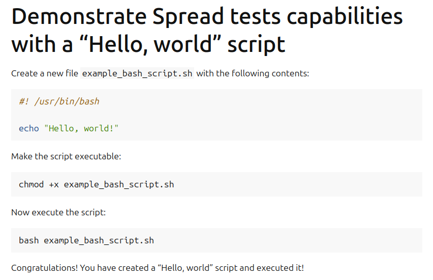 Demonstrate Spread tests capabilities with a "Hello, world" script